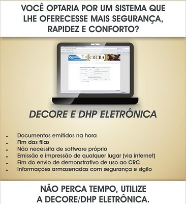 A DECORE só terá validade se contiver o selo DHP - Declaração de Habilitação Profissional, afixado ou impresso em seu corpo.